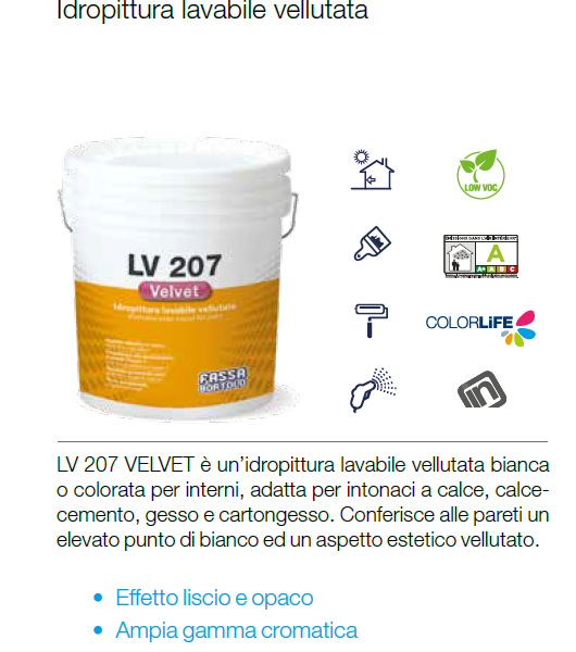 Idropittura LV 207 Velvet Superlavabile vellutata 14 lt colorata per interni Fassa Bortolo-Light