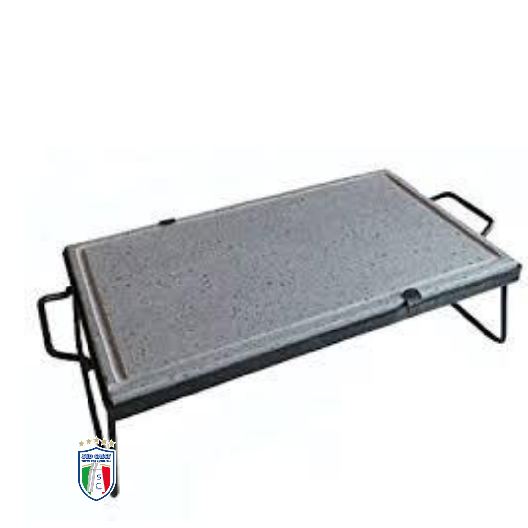 Bistecchiera in pietra naturale, spessore 2 cm, con sostegni richiudibili.