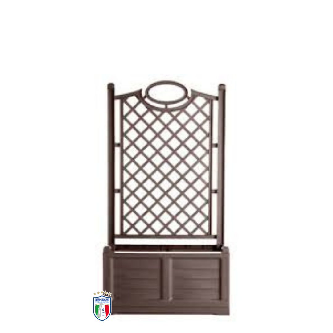 Fioriera con spalliera a pannello grigliato. MODELLO: Fioriera con separè