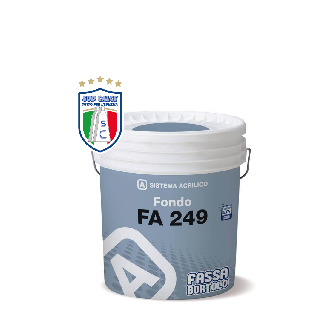 FA 249 è un fondo all’acqua usato come isolante, fissativo e stabilizzante del fondo prima dell’applicazione dei prodotti di finitura del Sistema Acrilico e Acril-silossanico sia all’interno che all’esterno.