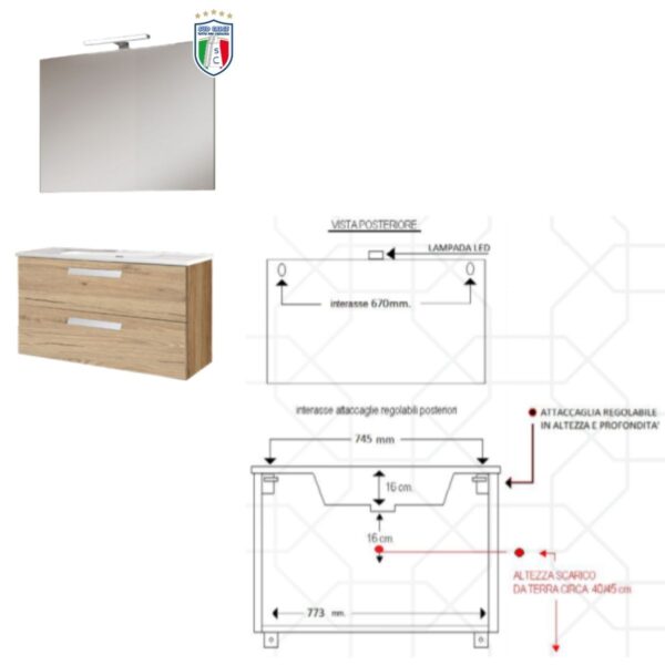 Composizione completa per Arredo bagno – mod. BOND 03 – COLORE ROVERE SCURO